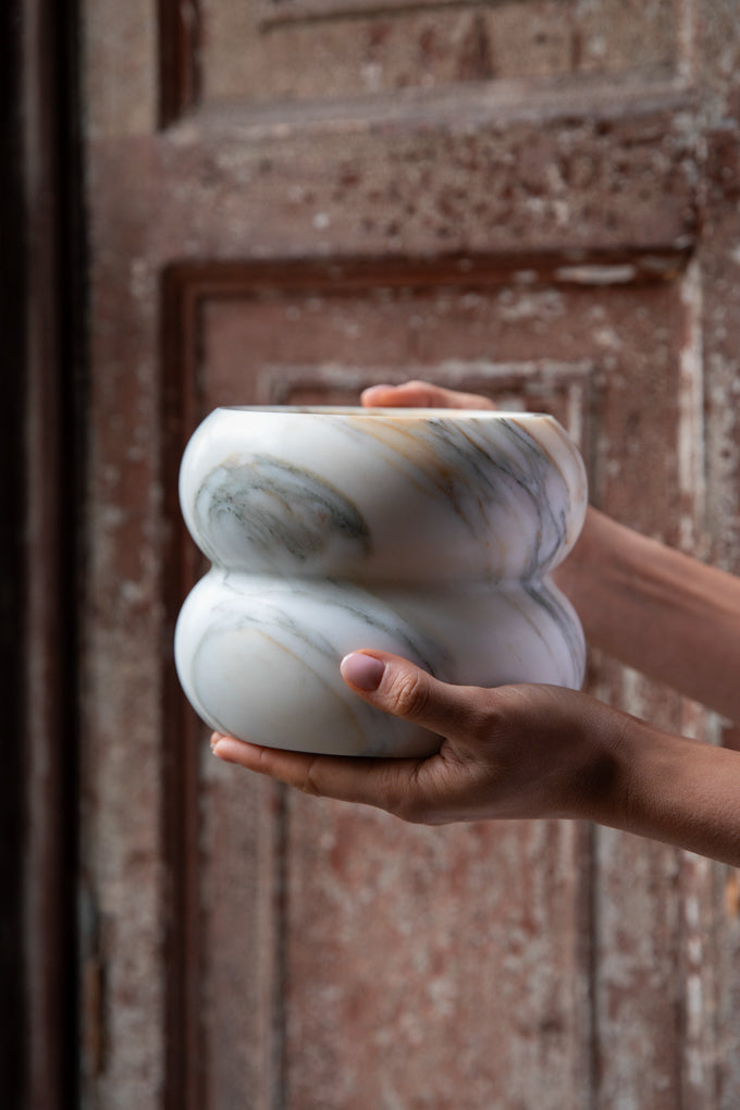 2. Carefully lift the used candle glass up and out of the marble vessel.
